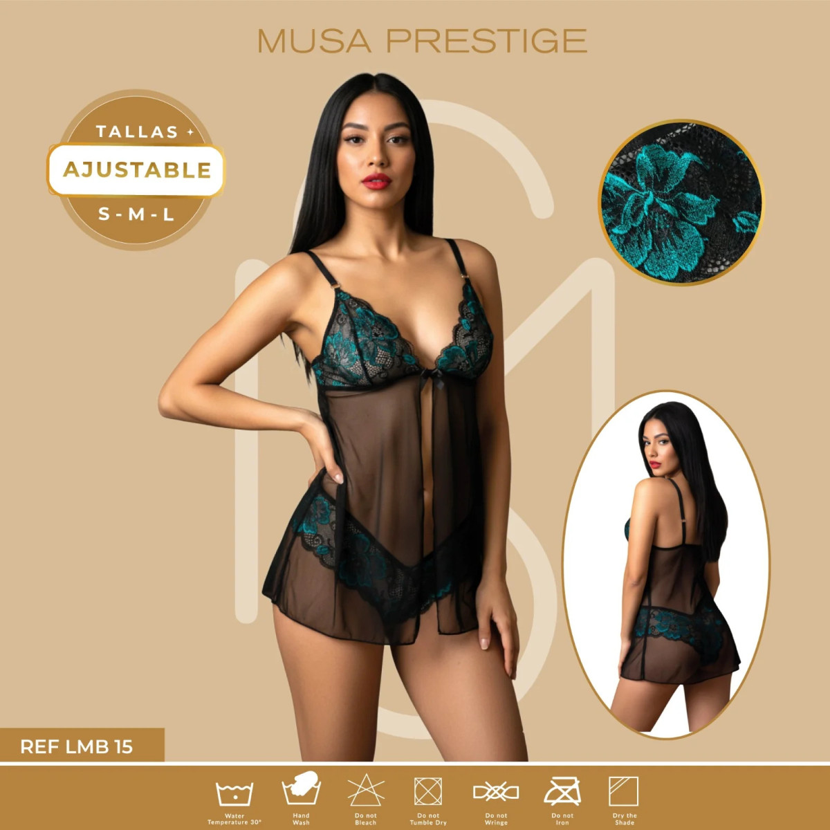 Lencería LMB 15 NEGRO ENCAJE VERDE